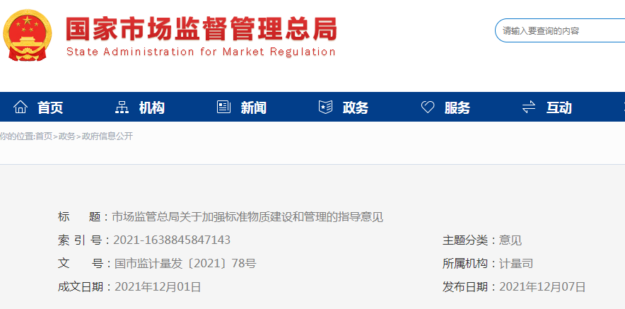 为加强标准物质监管,增强标准物质产业竞争力,规范标准物质管理,保障全国量值准确可靠,服务经济社会高质量发展,近日,市场监管总局印发了《关于加强标准物质建设和管理的指导意见》(以下简称《指导意见》)。