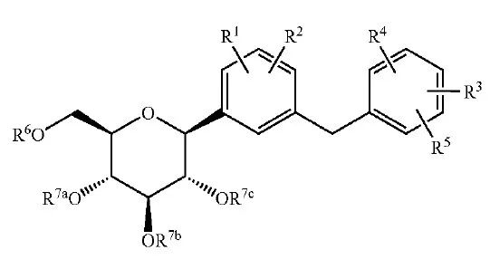 恩格列净开发过程中,比较有优势,因为它之前已经有六个类似的药物上市了,当然同时也面临开发空间窄小,突破专利难度大的不利因数。勃林格殷格翰的研究人员先是将图1通式的结构作为先导结构,对R1—R7进行了大量的官能团衍生化。
