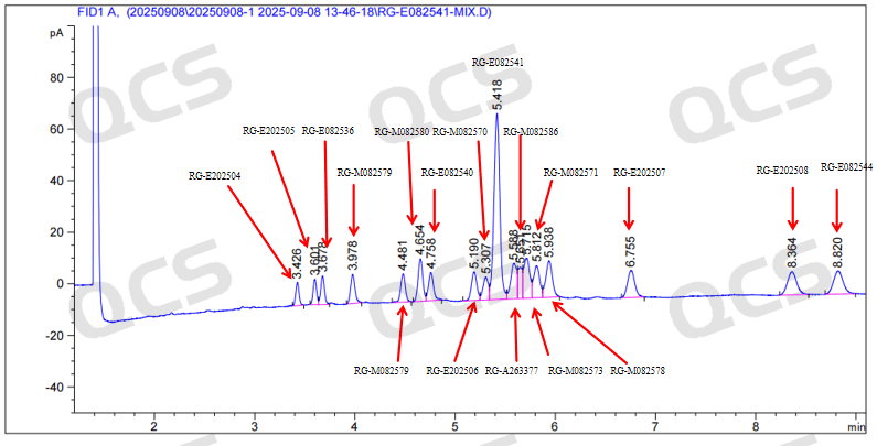After performing NMR and MS qualitative analysis on the impurities of ethyl eicosapentaenoate, our company conducted gas chromatography analysis according to the impurity method specified in the registration standard for ethyl eicosapentaenoate soft capsules. The results are shown in Figures 2 and 4 below.